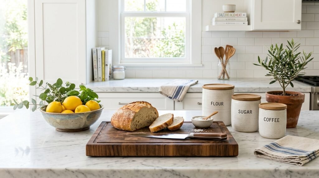 Here’s something most people overlook: your countertops are essentially a blank canvas. What sits on them either adds to or detracts from your kitchen’s overall look. Cluttered countertops make a kitchen feel chaotic. Thoughtfully styled ones make it feel magazine-worthy.