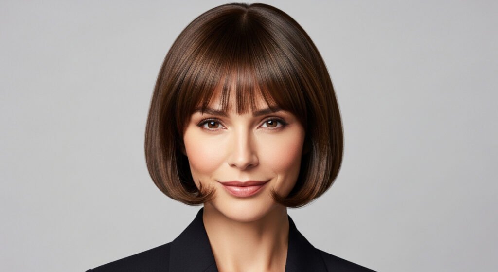 A short bob with bangs instantly refreshes your appearance. Whether you choose blunt bangs or side-swept bangs, they add softness and frame the face beautifully.