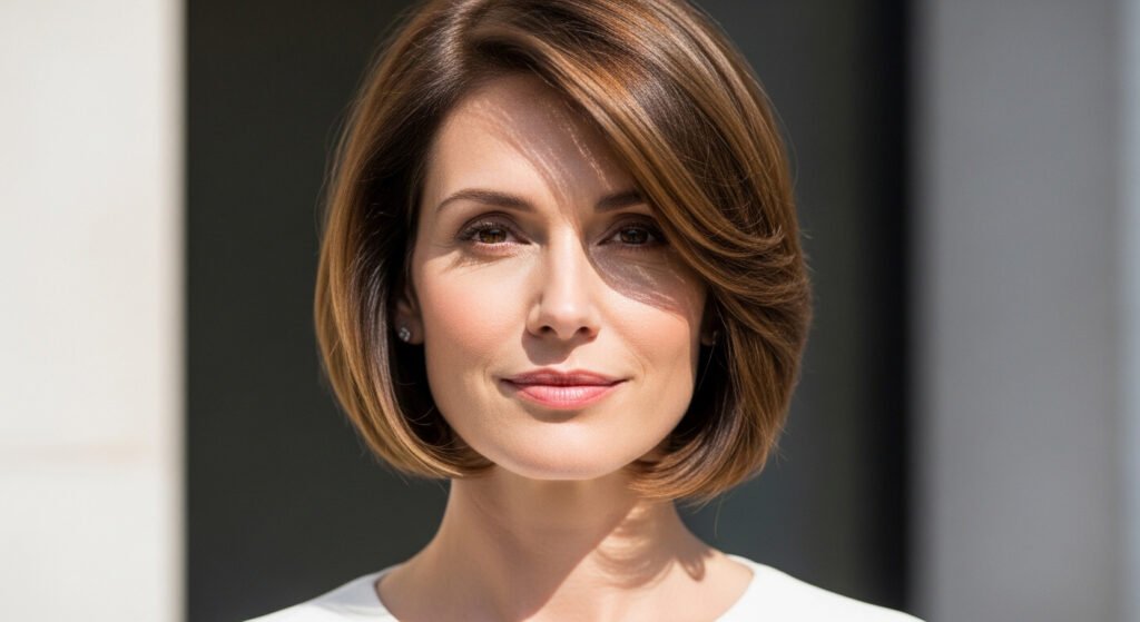 face visually. It’s easy to style and maintain, making it perfect for busy lifestyles. This hairstyle combines sophistication and modern appeal, making it one of the