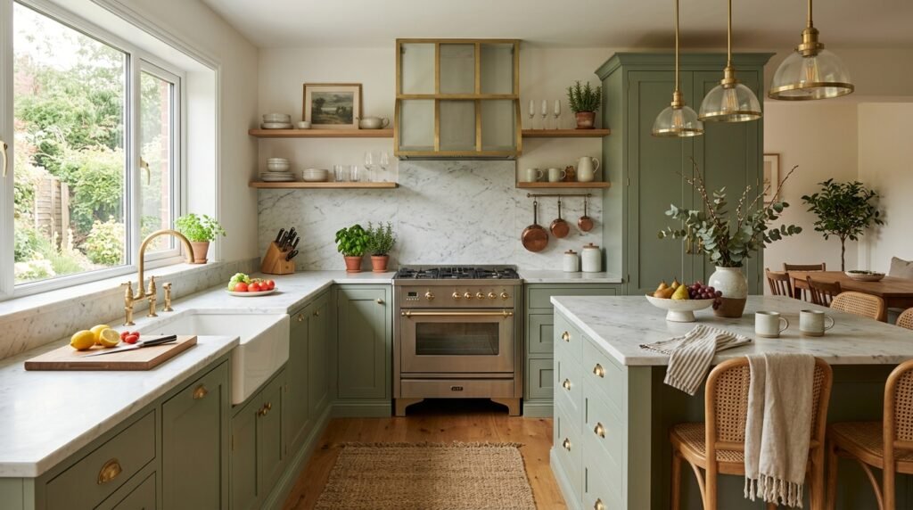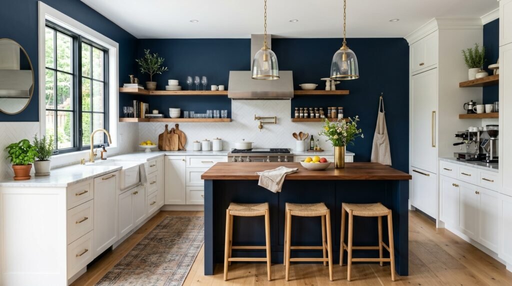 One of the most impactful kitchen decorating ideas is choosing the right paint color. Instead of sticking with safe whites and creams, consider bold kitchen paint colors like deep navy, emerald green, or warm terracotta. These kitchen wall colors can dramatically change the mood of your space. Pair a bold colored wall with neutral cabinetry to create visual interest without overwhelming the room. Soft sage green is particularly popular for creating a calming kitchen environment that feels both modern and welcoming.