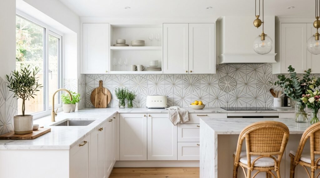 A decorative kitchen backsplash is an excellent way to add personality and style to your cooking space. Consider subway tiles for a classic look, geometric patterns for modern kitchens, or colorful mosaic tiles for a bohemian touch. Backsplash ideas range from traditional ceramic tiles to trendy peel-and-stick options. This kitchen decorating element serves both aesthetic and practical purposes, protecting your walls while adding visual depth and character to your kitchen design.