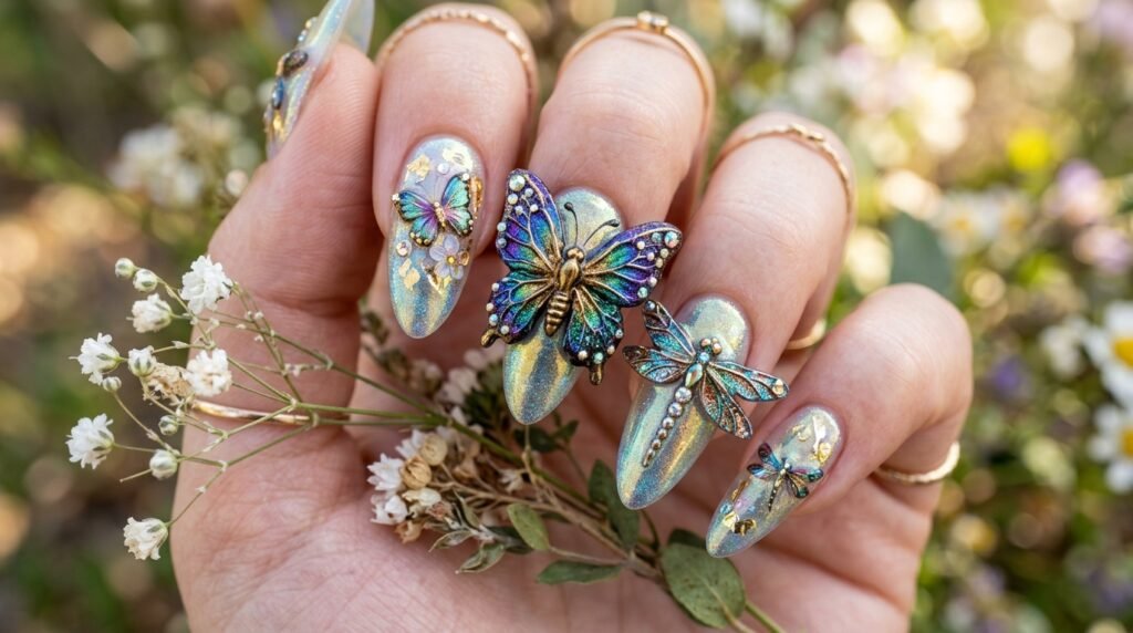10. Dragonfly and Butterfly 3D Nails — Statement Art