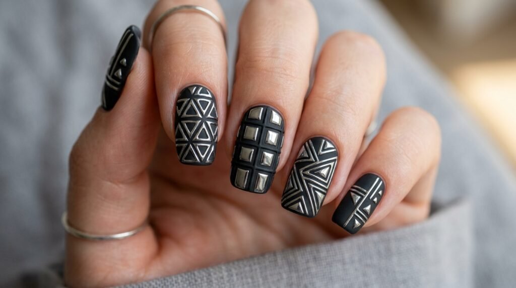2. Geometric 3D Nail Art — Modern and Architectural