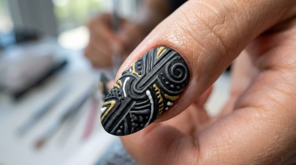 Abstract raised swirls and wave textures are perfect for the nail art lover who wants something genuinely unique and artistic. Instead of recognizable shapes, these designs use the raised technique to create flowing, organic textures that look different from every angle.