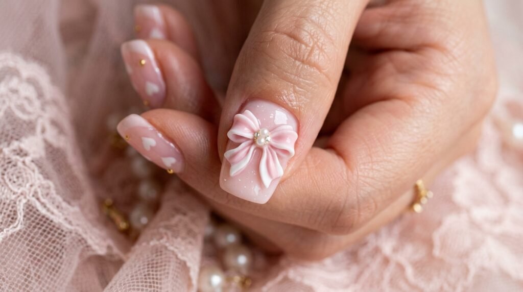 4. Raised Bow Nails — The Coquette Aesthetic