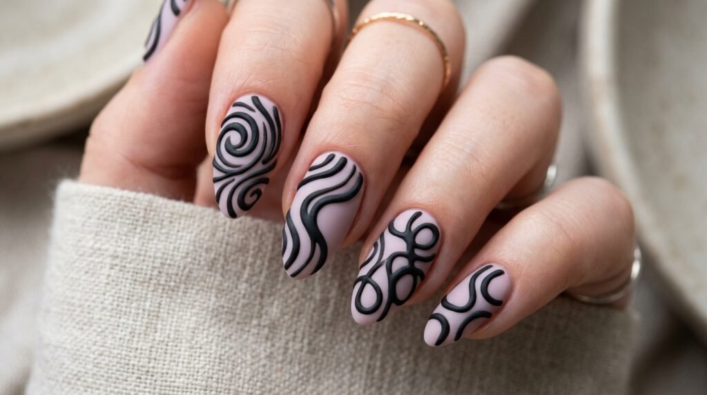 Moreover, these abstract designs are actually more forgiving to create than realistic florals or precise geometric shapes — because imperfection is part of the aesthetic. Each nail ends up being completely unique, which is exactly the point.