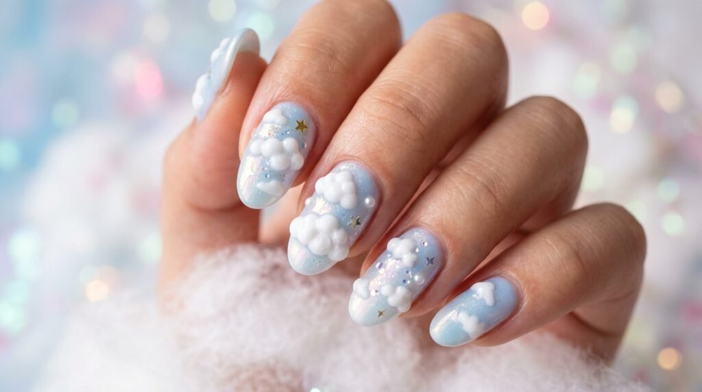 7. Cloud and Bubble Nails — Soft and Dreamy